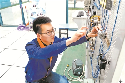 南京工业职业技术学院新能源应用技术专业学生吴珺正在调试其发明杯一等奖作品《道路交通无线传感网络研究》的电机部分。资料图片