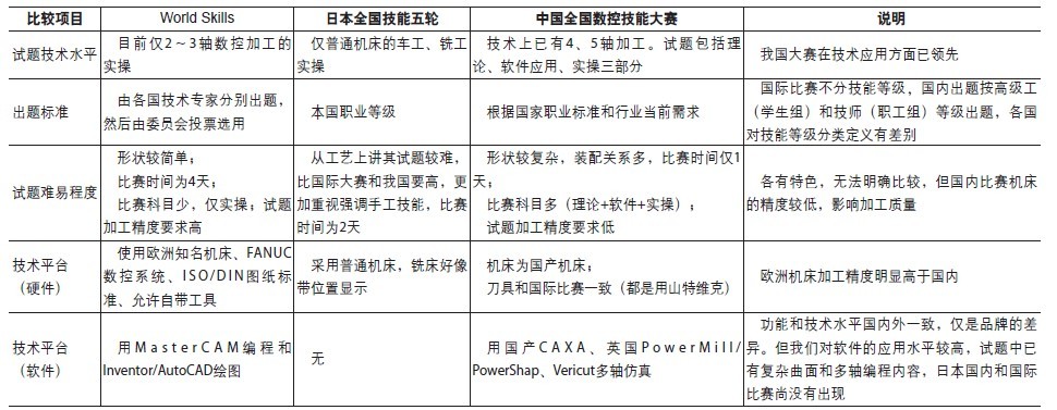 1.全国数控技能大赛与World Skills、日本技能大赛的比较国际国内数控技能比赛的关键内容对比见下表。