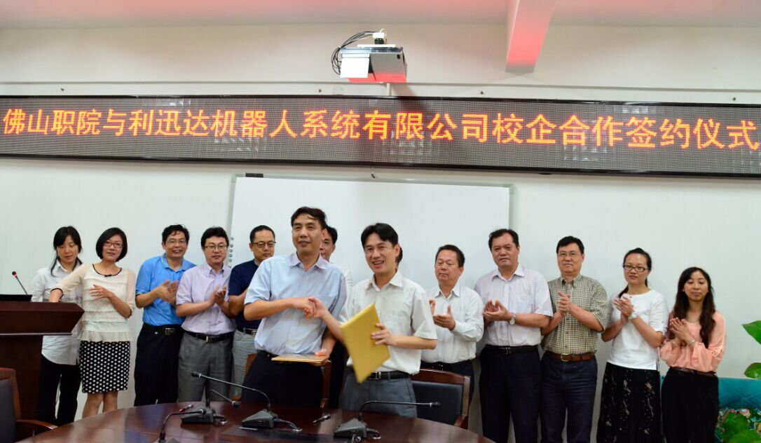 5月13日上午,佛山职业技术学院与佛山市利迅达机器人系统有限公司共同签署合作协议,合作培养机器人专业人才,合作开展项目开发、技术创新等工作,校企携手共建机器人专业建设。