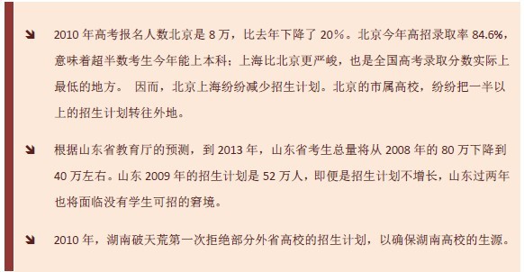 根据相关专家预测,如果仍然按目前每年高校招生计划增长5%测算,到2013年后,高考的全国平均录取比例就可能超过80%,在经济发达、高校众多的省份,超过90%是正常的,甚至会达到100%。这就意味着,理论上考0分也可以上大学。