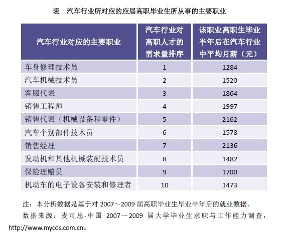2010年度汽车类专业毕业生就业与人才供需分析 (摘要)