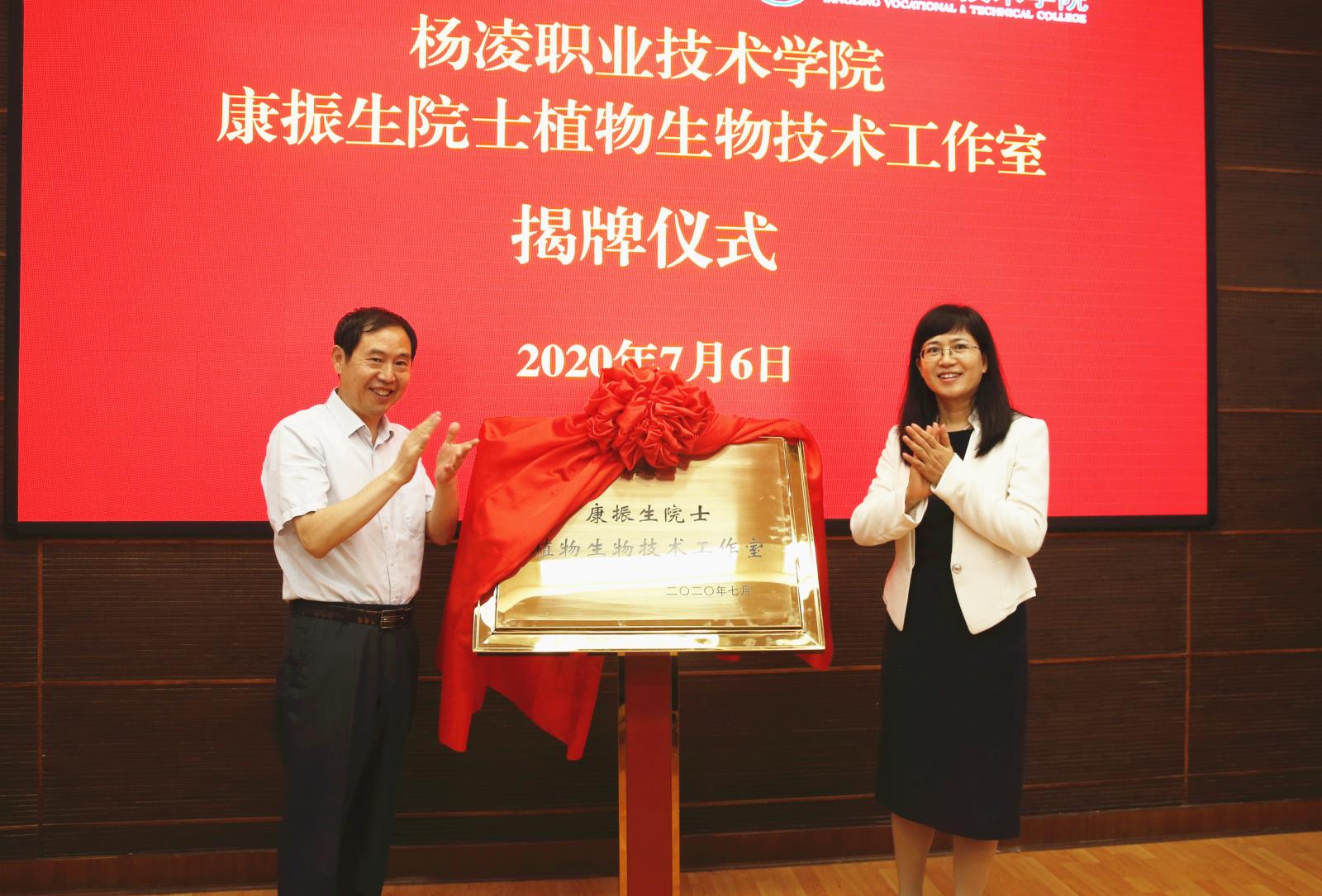 康振生院士在讲话中表示,自己愿意带领旱区作物逆境生物学国家重点实验室,与杨凌职院相关领导、专家凝心聚力,协同推进植物生物技术工作室朝着又好又快的方向发展。在开展科学研究的同时,带动培养农业生物技术专业类学科带头人、教学名师和青年骨干教师,打造一支高水平创新团队;指导教师开展重大项目的申报与研究工作,提升科研水平,形成一种浓郁的科研氛围;积极推动农业生物技术专业群的科技创新,探索科技研发模式和新技术的孵化方式,并通过优势互补的联合项目研发,推进产学研的结合和研究成果的工程应用,构建一个开放的创新平台,满足杨凌职院“双高”建设要求。