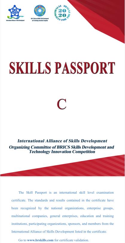 日前,在金砖国家工商理事会中方技能组的推动下,金砖国家技能发展与技术创新大赛组委会和一带一路暨金砖国家技能发展国际联盟为大赛获奖选手分批颁发技能护照,德州职业技术学院机械工程系2019年金砖大赛获奖选手杲振楠、刘彪、薛俊磊三名同学获C级技能护照。