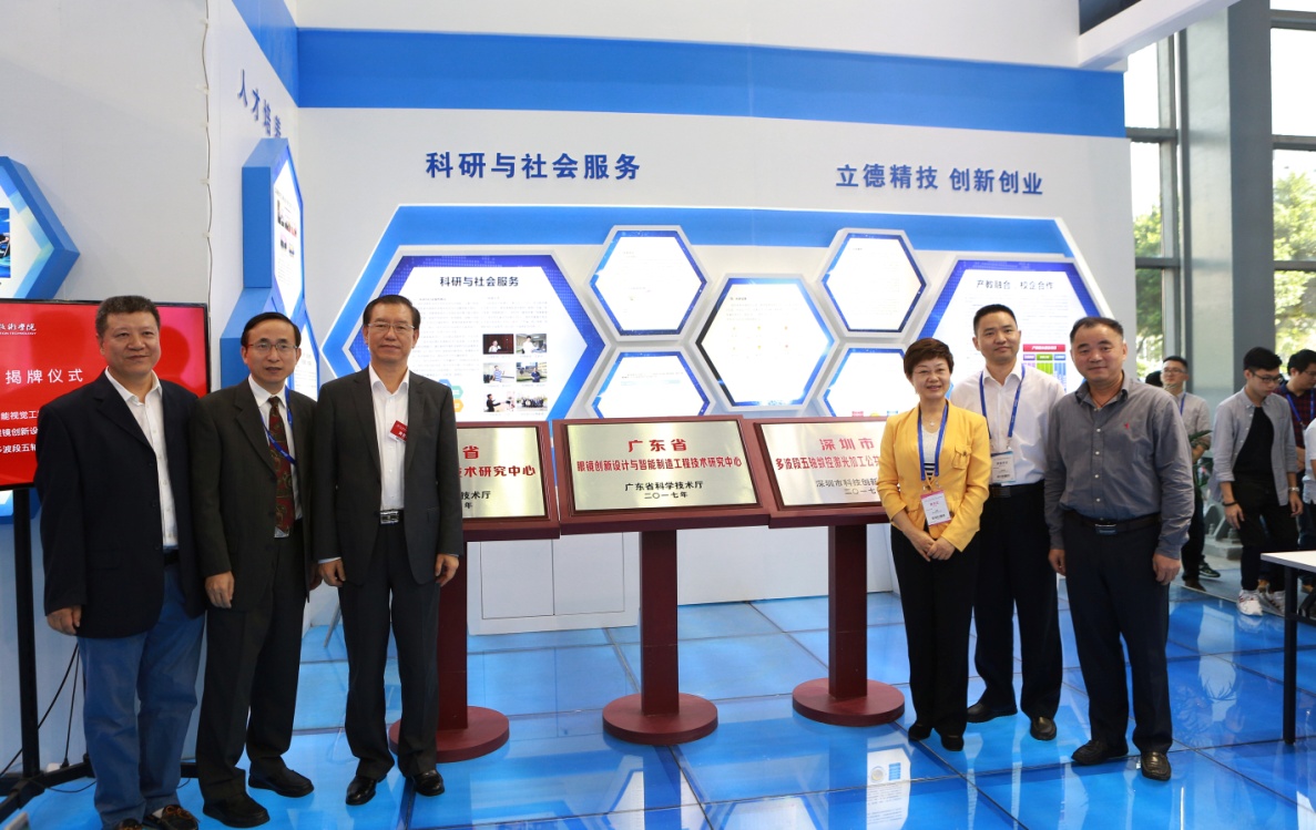 深圳信息学院校党委书记刘锦(右三)、校长孙湧(左二)为学校的2家省级、1家市级技术平台揭牌