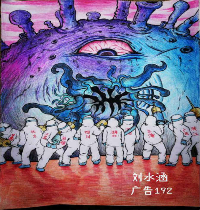 每一个时代都有那个时代的英雄,每一个闪光点都值得记录。在这特殊的时期,绵职学子以笔为“枪”,作画战“役”,画出一个个值得我们永记在心的泪目时刻。(绵阳职业技术学院 刘晨晨)