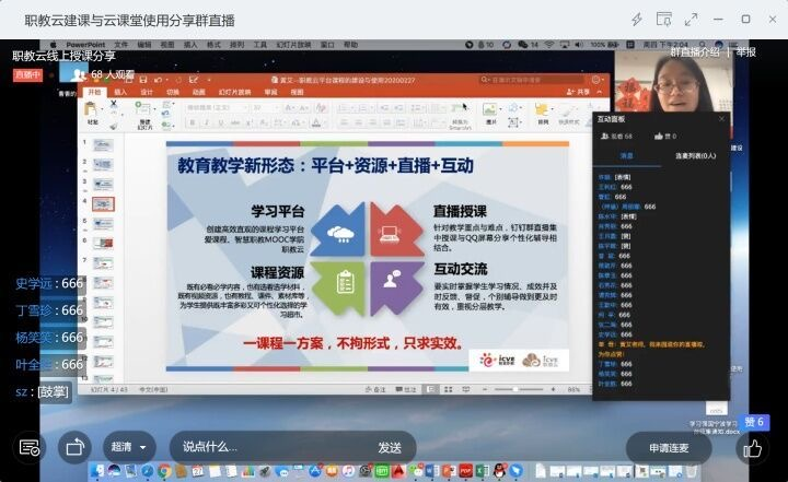 “她的课程资源非常丰富,这真是在‘停课不停学’期间给每位老师的大礼物!大家感谢你。”江西环境工程职业学院教务处长曾斌说。“之前线上教学经验不足,不知道怎么把平台用好,不知道如何与学生更好地互动,不知道如何有效地开展线上教学。”