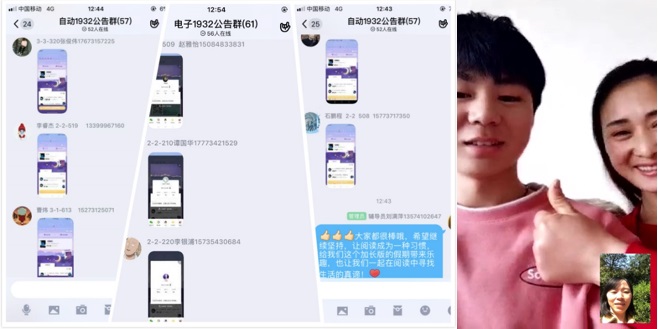 在校学生学业支持中的推动下,“制定一个计划”的活动吸引了专业老师,辅导员,学生小导师纷纷参与其中,通过“一帮一”,“一帮多”等形式,让每一个在校生都拥有了属于自己的学习计划。通过“每日学打卡”,“朋友圈积赞”和“云家访”等小环节,让学生自律、同学比拼、家长监督形成了一个推进学生认真践行学习计划的网络,让学生的学习计划真正落到了实处。在辅导员的云家访中,家长们对阅读活动都非常支持,积极反馈自己孩子的成长与改变。在刘满萍辅导员与自动1932班吴庆国母亲的云家访中,学生家长分享了覃同学通过阅读竞赛所带来的改变,为学校的活动通过微信点赞。