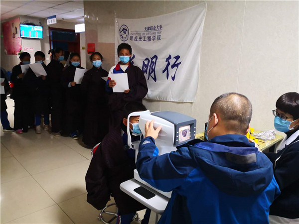 近日,在红桥区委统战部的组织下,眼视光学院“光明行”小分队深入甘南藏族自治州碌曲县开展“奉献光明爱心,助力脱贫攻坚”活动。对当地贫困家庭中小学生进行眼健康宣教、视力筛查、验光配镜,为当地300余名贫困家庭中小学生定制了爱心眼镜。通过这次活动,增强了当地群众爱眼护眼、科学用眼的意识,解决了部分学生视物模糊、急需一副矫正眼镜的问题,使他们又能清晰地学习生活,减轻了其家庭的负担,助力当地群众脱贫攻坚。