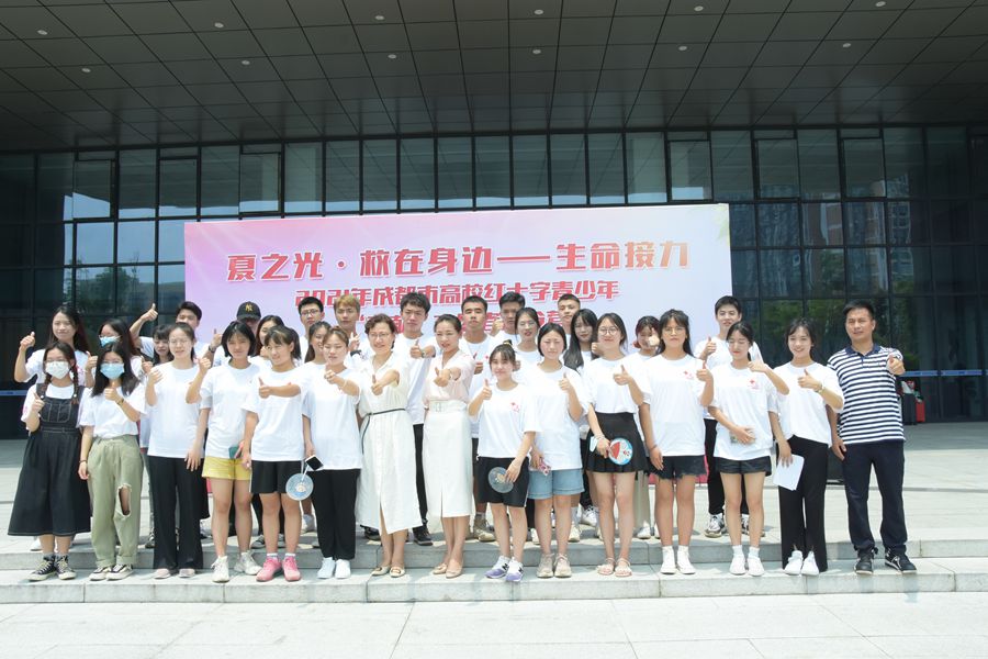(图为夏之光-救在身边——生命接力2021年成都市高校红十字青少年“三献”志愿者夏令营活动合影)