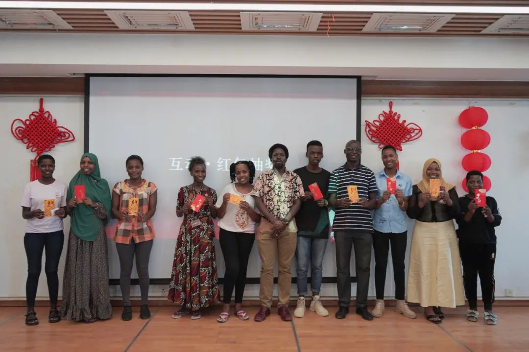 讲座最后的抽奖环节,由孔院坦方院长穆坦贝教授抽取中奖号码,再次把活动气氛推向了高潮。在现场进行新闻报道的新华社的一位摄影师也幸运地抽中了来自达大孔院的新春奖品。